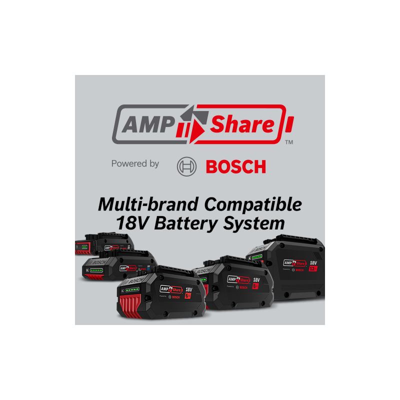 - AMPShare™ System compatibility – 18V batteries and chargers are compatible with Bosch 18V power tools and a growing list of cordless products from AMPShare™ brands