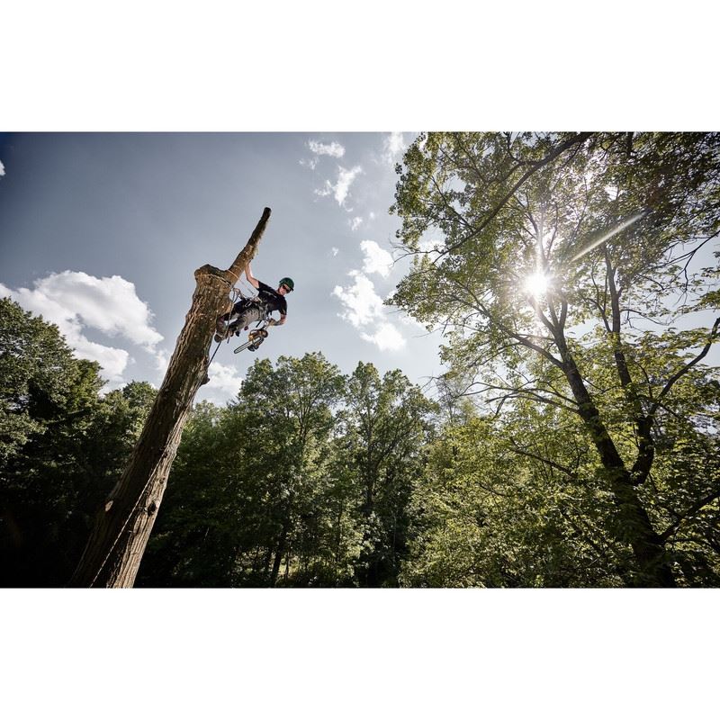 Built for the experienced tree professional, the 60V MAX* 14 in. Top Handle Chainsaw uses advanced FLEXVOLT batteries to maximize power without the hassles of gas. Cut through an 11 in. log up to 35% faster than a 35cc gas chainsaw with up to 2.4 HP and a chain speed of 23 m/s. Engineered to deliver optimal maneuverability while operating in difficult areas, this saw is ideal for tree pruning and removal. Powered by FLEXVOLT batteries, this saw has the capacity to make 160 cuts per charge on 4x4 pressure-treated pine. Equipped with an adjustable oiler, D-ring harness attachment point, tooled tensioning, inertia chain brake, metal bucking spikes, and an LED dashboard, this 60V MAX* 14 in. Top Handle Chainsaw is designed to charge through demanding jobs.INCLUDES: