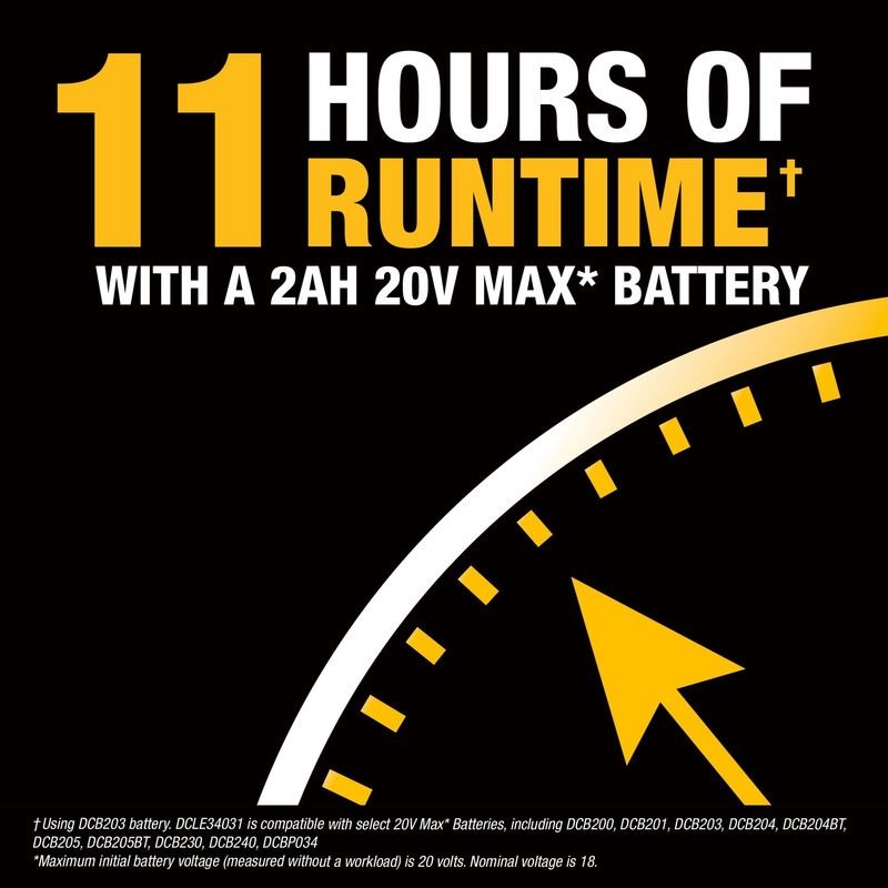 11 hours of operation w/ 2AH battery Not Included