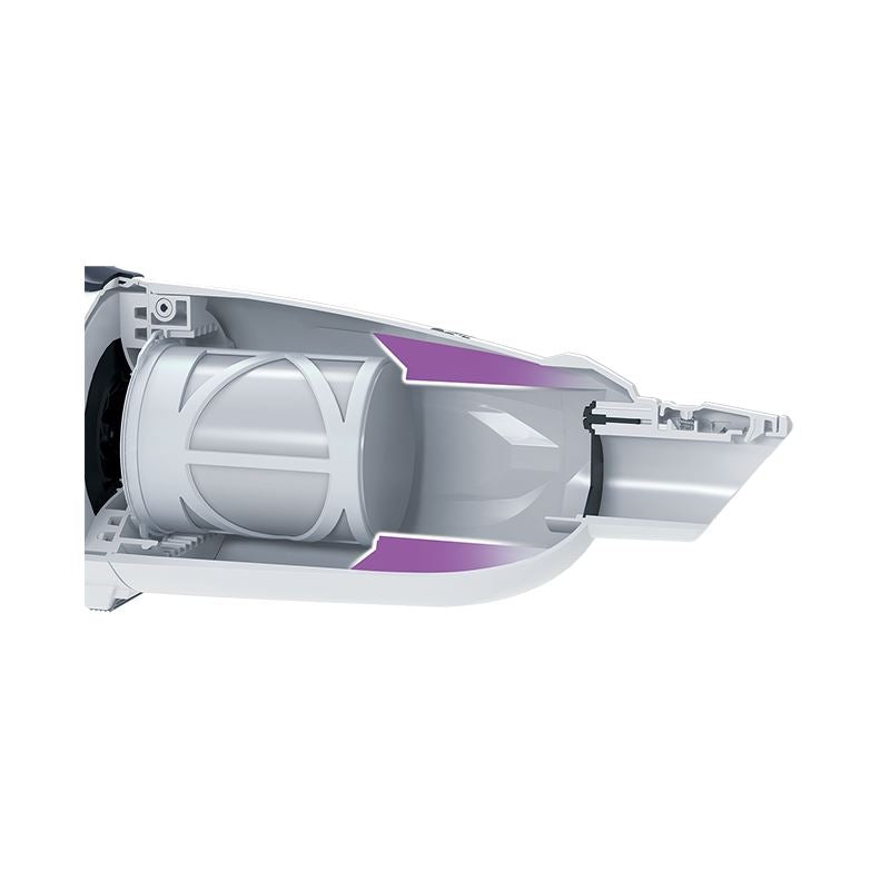 DESIGN : Bagless cloth filtration system allows easier cleaning and quicker debris disposal