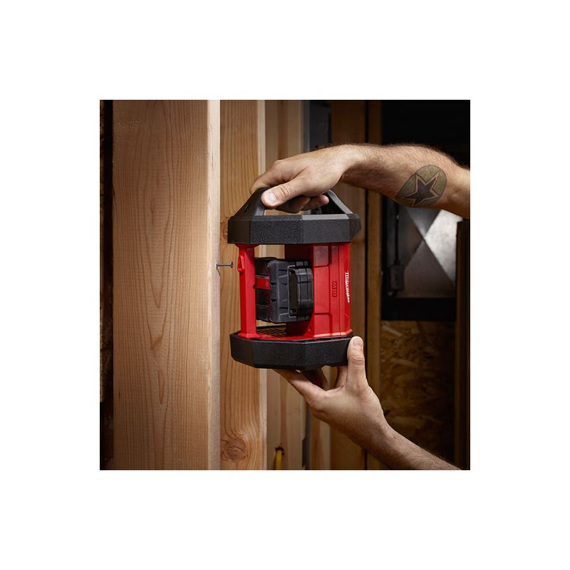The Milwaukee M18 LED Flood Light delivers up to 30% brighter light output than corded 250W Halogen lights. Designed to illuminate large workspaces on the jobsite, The cordless flood light uses 8 High-Quality LEDs to provide 1,100 Lumens and up to 1,300 lux. It's powered by the M18 Red Lithium Battery for up to 8 Hours of runtime on a single charge. With its roll cage design and Impact-Resistant, Replaceable lens, It stands up to the toughest working conditions. This compact flood light features an octagonal shape so the light may be used at multiple angles. The versatile hanger provides Hands-Free use in a variety of applications.