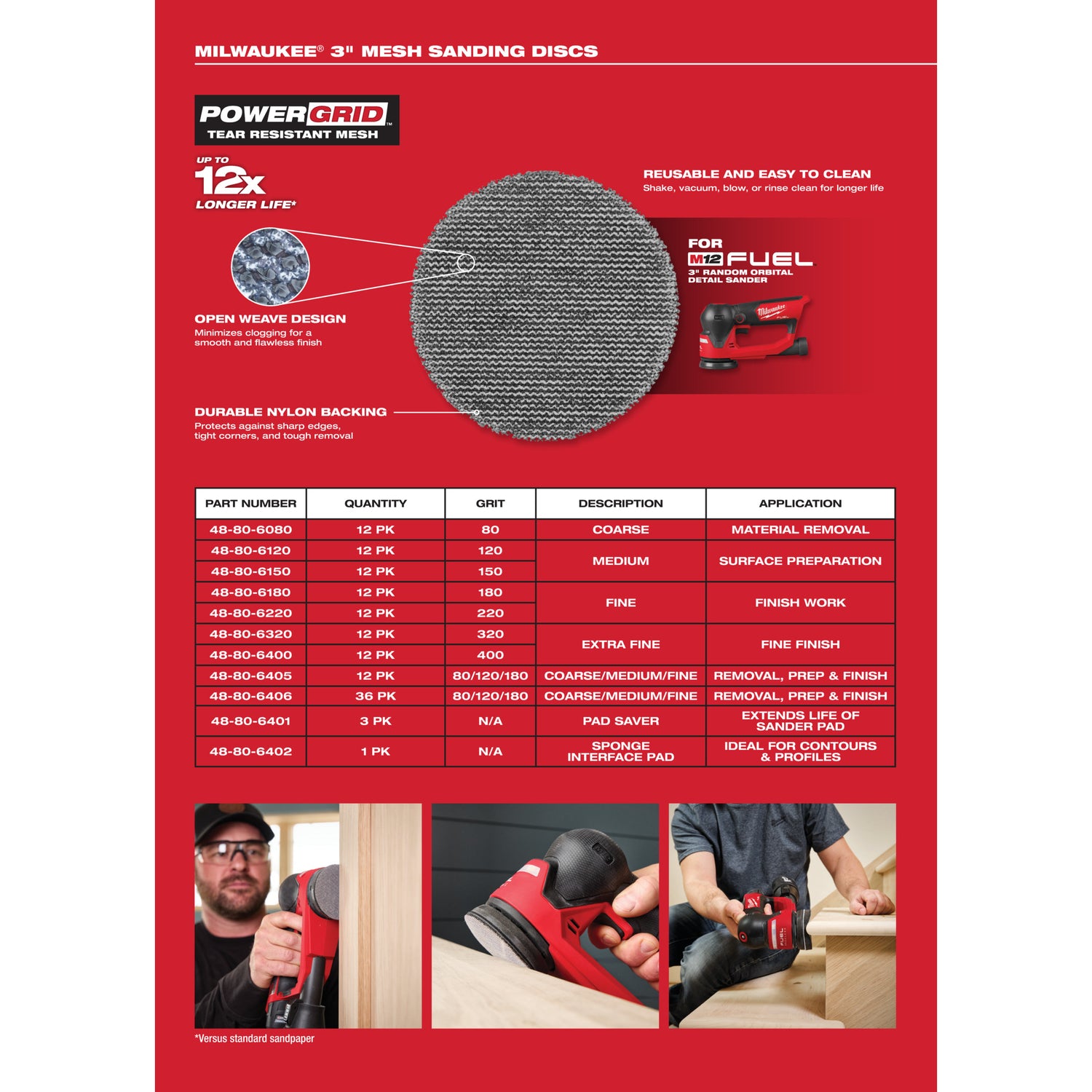 Compatible with the full lineup of new Milwaukee POWERGRID™ Mesh Sanding Sheets.