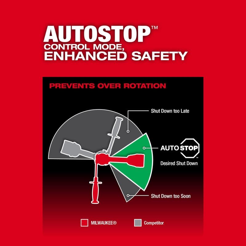 Auto-Stop Feature to Protect from overroation in a bindup for enhanced safety, equipped with a dedicated autostop light on foot of tool to indicate a protection event