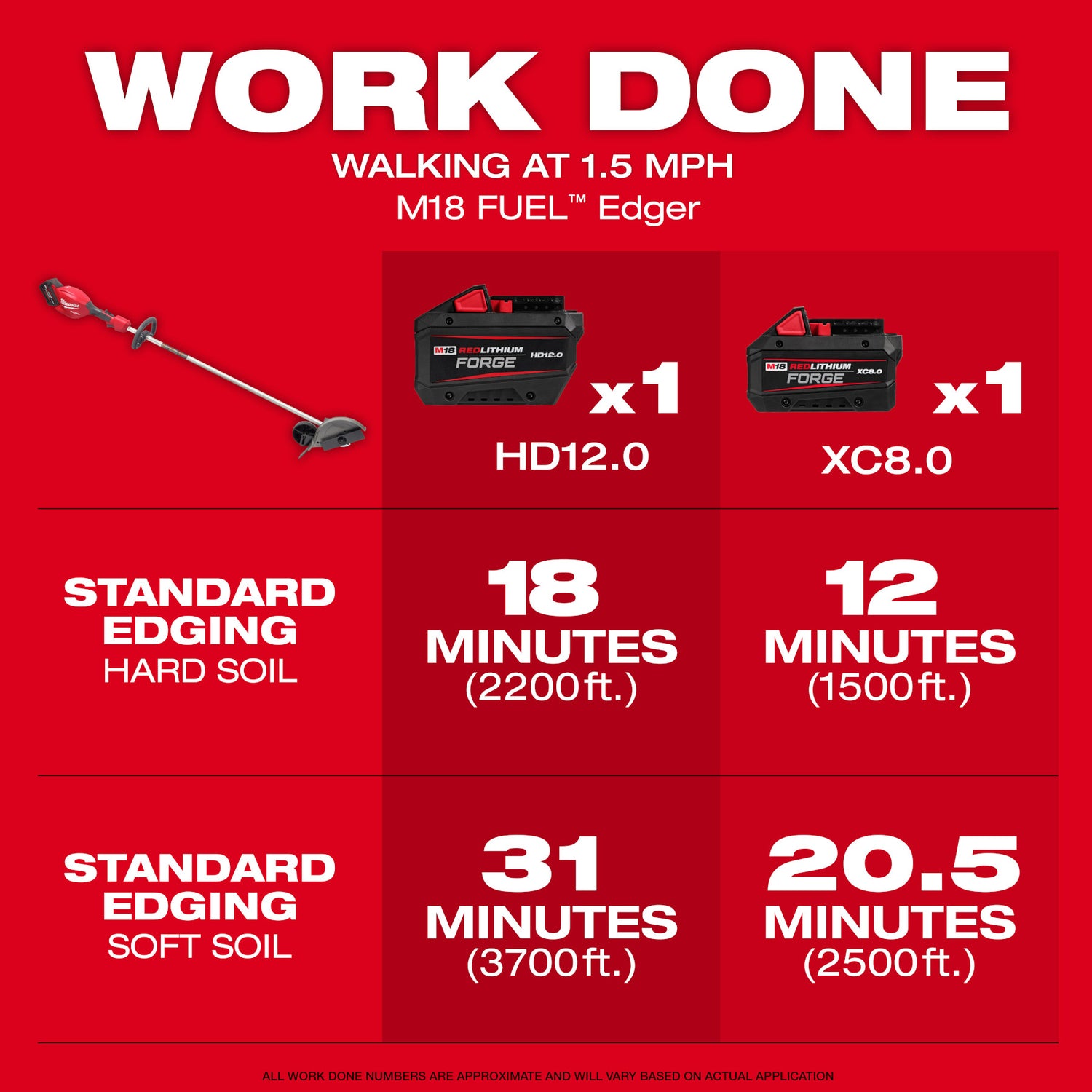 Our M18 FUEL™ Edger is designed to meet the performance, durability, and ergonomic needs of landscape maintenance professionals. The Edger’s POWERSTATE™ Brushless Motor™ delivers more power than 31cc gas to take on demanding applications like edge creation and maintains a higher blade speed to create clean edges faster. This fixed shaft edger is lighter weight and has less vibration reducing fatigue. The M18 FUEL™ Edger reaches full throttle in under 1 second increasing productivity and includes a site line on the guard, steel skid plate, and blade wear indicator to provide more control and increase productivity. Our REDLINK PLUS™ Intelligence enables full-circle communication between the tool and battery, providing you with unmatched levels of performance, protection, and productivity. This Edger is optimized for use with our M18 FUEL™ REDLITHIUM™ FORGE™ HD12.0 Battery to provide more power and run time. The M18 FUEL™ Edger is fully compatible with 275+ solutions on the M18™ System.